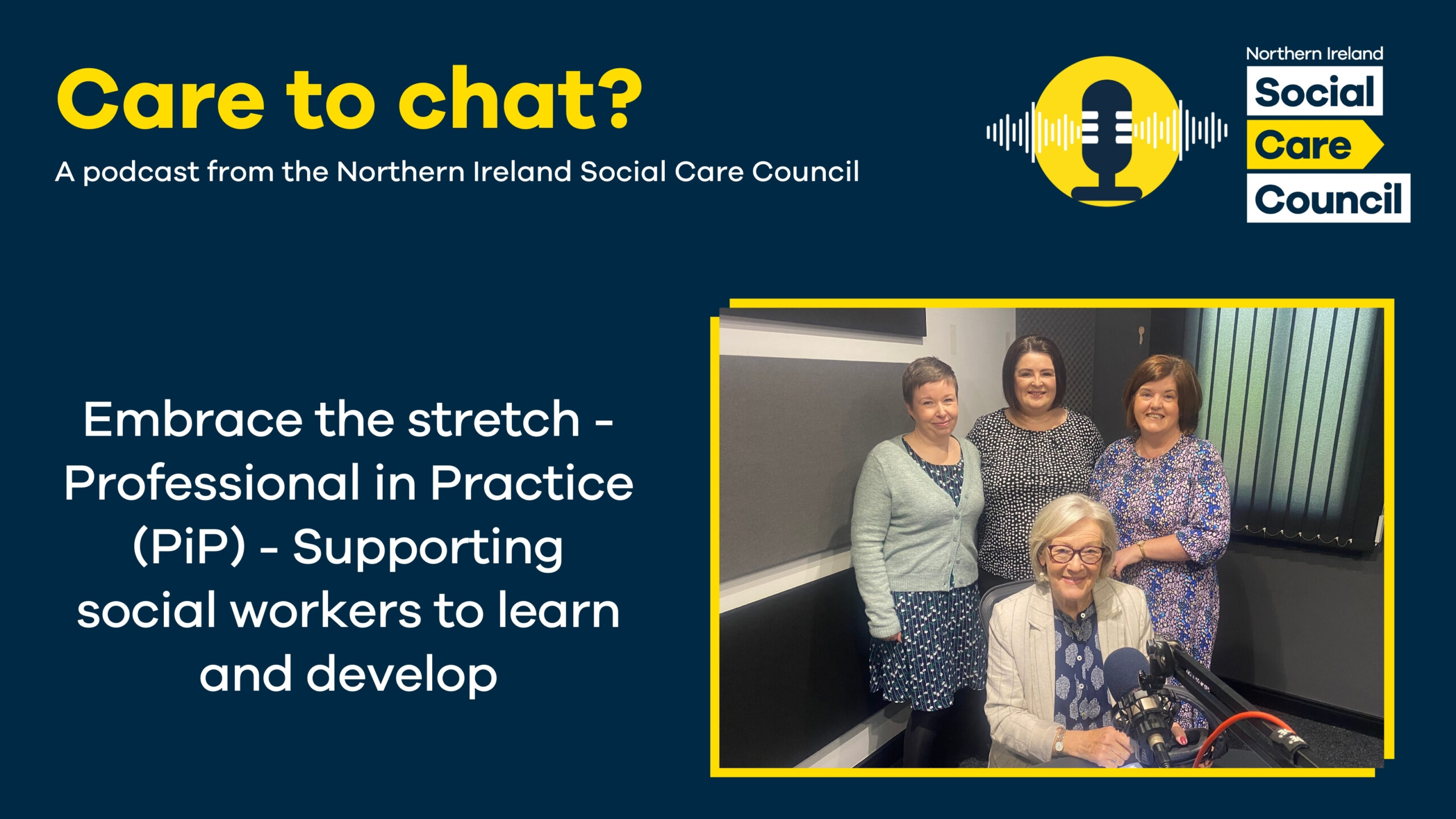 The Social Care Council releases a new episode every fortnight, discussing current topics about social care and social work regulation in Northern Ireland. Download, subscribe and listen to the latest Social Care Council ‘Care to chat?’ podcast episode today here, or by searching ‘Care to chat’ in your podcast player.